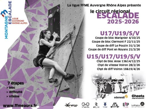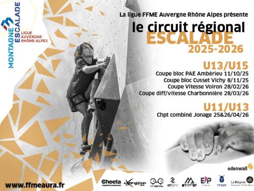 Le circuit régional s’étoffe également de saison en saison : pour les U15 et plus, chaque étape permet d’engranger des points pour une éventuelle qualification aux championnats régionaux. Les U13 (et même U11 cette saison) ont également leur combiné dédié. Plus d’infos sur le site de la FFME AuRA ici.